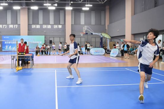 开幕式上,大赛组委会负责人介绍了比赛要求,东方共享党委主要负责人致欢迎辞。比赛中,各参赛队秉持“安全第一、友谊第二、比赛第三”的原则,赛出了风格,赛出了水平,展现出东方电气人顽强拼搏、奋发有为的精神风貌。场内对决紧张激烈,各运动员灵活运用战术,轻巧吊球与强力扣杀交替上演,行云流水般的精湛技艺引得场边“好球!”“加油!”的助威声此起彼伏,将现场气氛不断推向高潮。