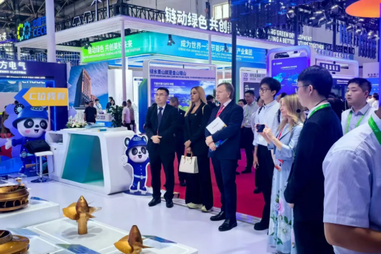 在东方电气集团展台,自主研制的G50燃机、高端水电转轮、26兆瓦级海上风电机组、12000米特深井智能钻机、海水制氢平台“东福一号”、300千瓦组串式光伏逆变器、氢能燃料电池等创新链产品模型集中亮相,吸引了众多专业观众驻足参观。