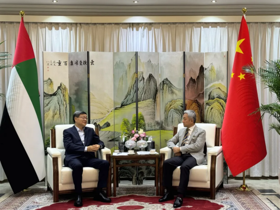 在拜访中国驻阿联酋大使馆时,罗乾宜感谢使馆对东方电气集团长期以来的大力支持,并与中国驻阿联酋大使张益明就当地政治经济形势、社会发展及能源产业合作机遇等议题进行了沟通交流。